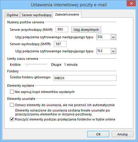 Konfiguracja konta pocztowego IMAP w programie Outlook