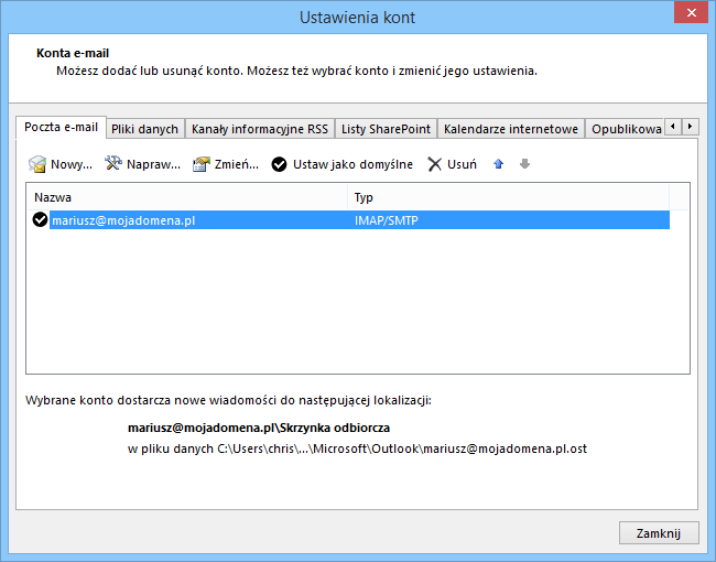 Konfiguracja konta pocztowego IMAP w programie Outlook