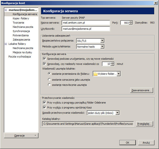 Konfiguracja konta pocztowego IMAP w programie Thunderbird
